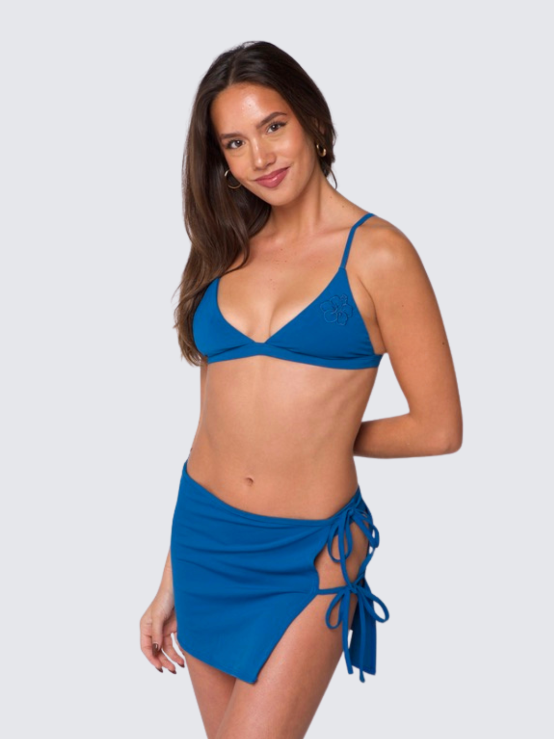A MUST HAVE Accessory, our Beach Skirt! She is the ultimate mini wrap skirt, adorned with two playful ties on the left side, this skirt is a head turner. Crafted from the same fabric as our bikinis, our beach skirt can be worn in and out of the water!